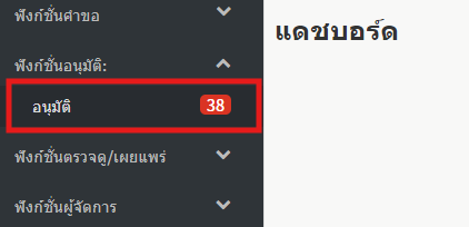 1. เลือก「อนุมัติ 」ที่อยู่ใน「ฟังก์ชั่นอนุมัติ」ในเมนูด้านซ้าย