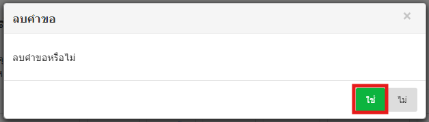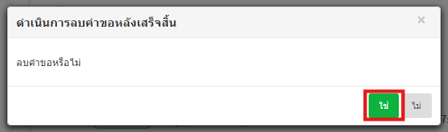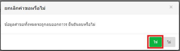 8. จะปรากฏแถบข้อความ「ยกเลิกคำขอหรือไม่ ? 」พอเลือก「ใช่」คำขอจะถูกลบ