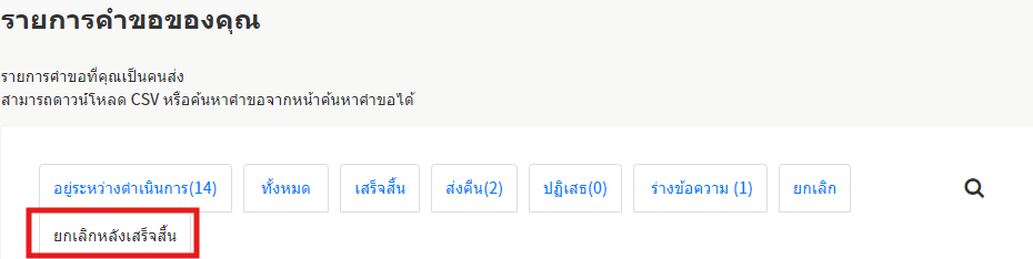 เลือก ฝั่งขวาบน จะสามารถค้นหาใบคำขอได้จากหลากหลายเงื่อนไข