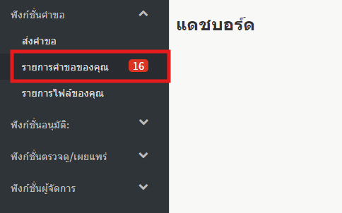 1. เลือก「รายการคำขอของคุณ」ที่อยู่ใน「ฟังก์ชั่นคำขอ」ในเมนูด้านซ้าย