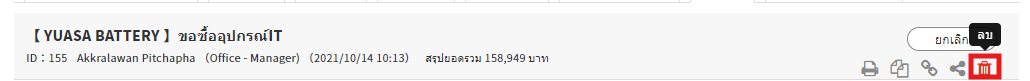 3. ใช้เม้าส์ชิ้คำขอที่ต้องการลบ และไอคอนจะปรากฏขึ้นทางขวา