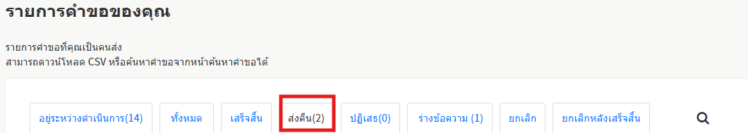 2. เลือกปุ่ม「ส่งคืน 」ในหน้าจอ 「รายการคำขอของคุณ 」รายการคำขอที่ถูกส่งคืนจะปรากฏขึ้น