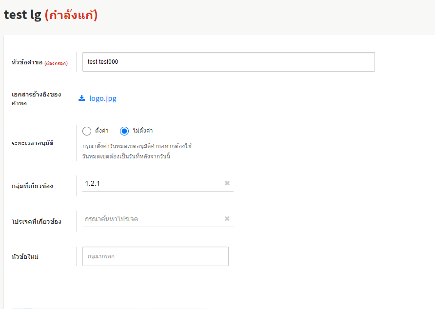 4. หน้าจอการแก้ไขคำขอจะปรากฎขึ้น