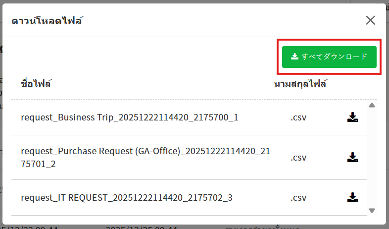 สามารถทำการดาวโหลดที่หน้าจอ 「รายการคำขอทั้งหมด 」「รายการคำขอที่สามารถอ้างอิงได้ 」