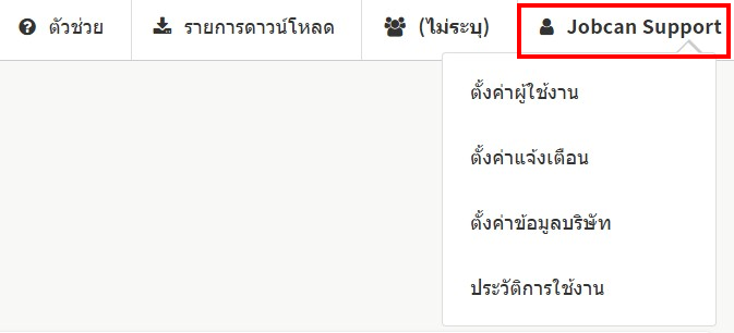 1. เมื่อเข้าสู่ระบบหน้า JOBCAN Workflow เรียบร้อยแล้ว คลิกชื่อที่มุมขวาบน